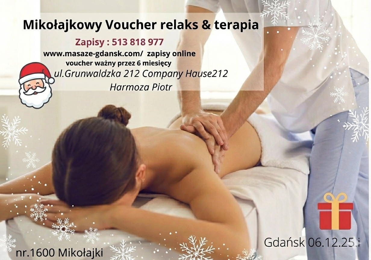 Voucher Mikołajkowy – Pakiet 5×60 min – Fizjo Masaż / Relaks / Terapia – 850 zł